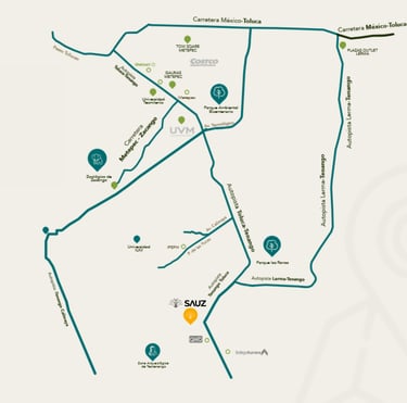 Sauz es más que un lugar para vivir; es donde diseño, naturaleza y comodidad se unen. Ubicado a solo 45 min de la Ciudad de México y 15 min de Metepec.